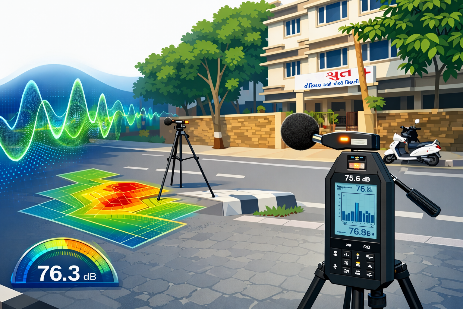 Conducting a comprehensive noise monitoring and measurement survey using professional sound level meters to assess environmental noise levels in the area. Our instruments are strategically positioned to capture precise sound data, enabling an accurate evaluation of existing noise conditions and supporting effective noise management and mitigation planning.